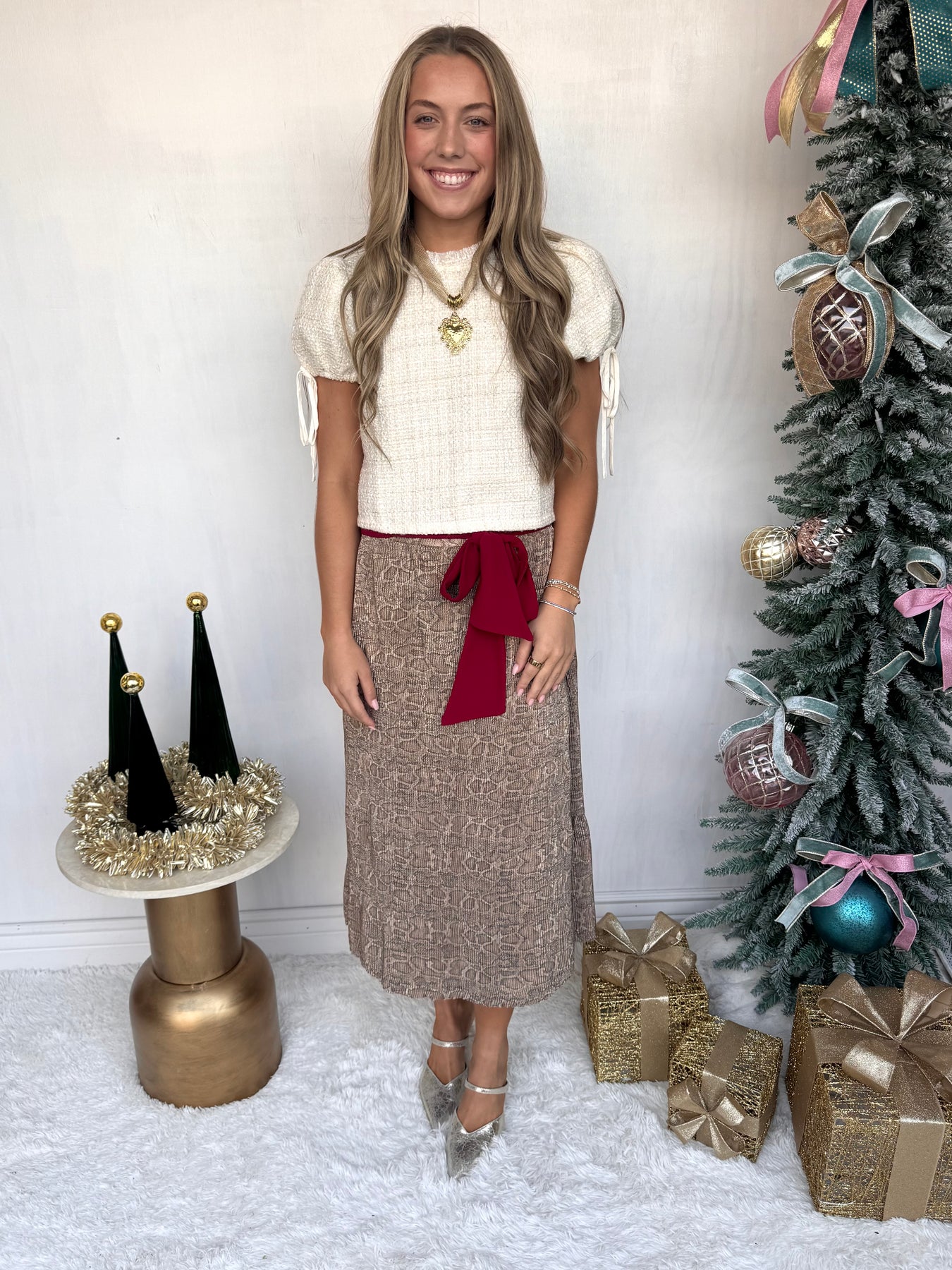 Elevate your style with this eye-catching animal print midi skirt featuring a bold red contrast tie belt. Its flattering silhouette enhances your figure while the striking print adds a fierce, fashionable edge. Perfect for day-to-night wear, this skirt combines comfort with a statement look that turns heads wherever you go. Add a touch of wild sophistication to your wardrobe today.