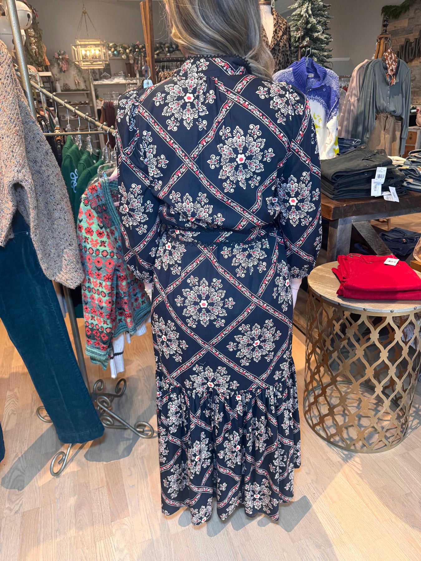 The Baylun Print Maxi Dress with Tie Waist is a stunning choice for Fall and Winter. Its flattering tie waist enhances your silhouette, while the flowing print adds elegance to any occasion. Perfectly paired with heels or boots, this dress transitions effortlessly from the office to church, making it a versatile addition to your wardrobe. Embrace style and comfort all season long with this sophisticated maxi dress.