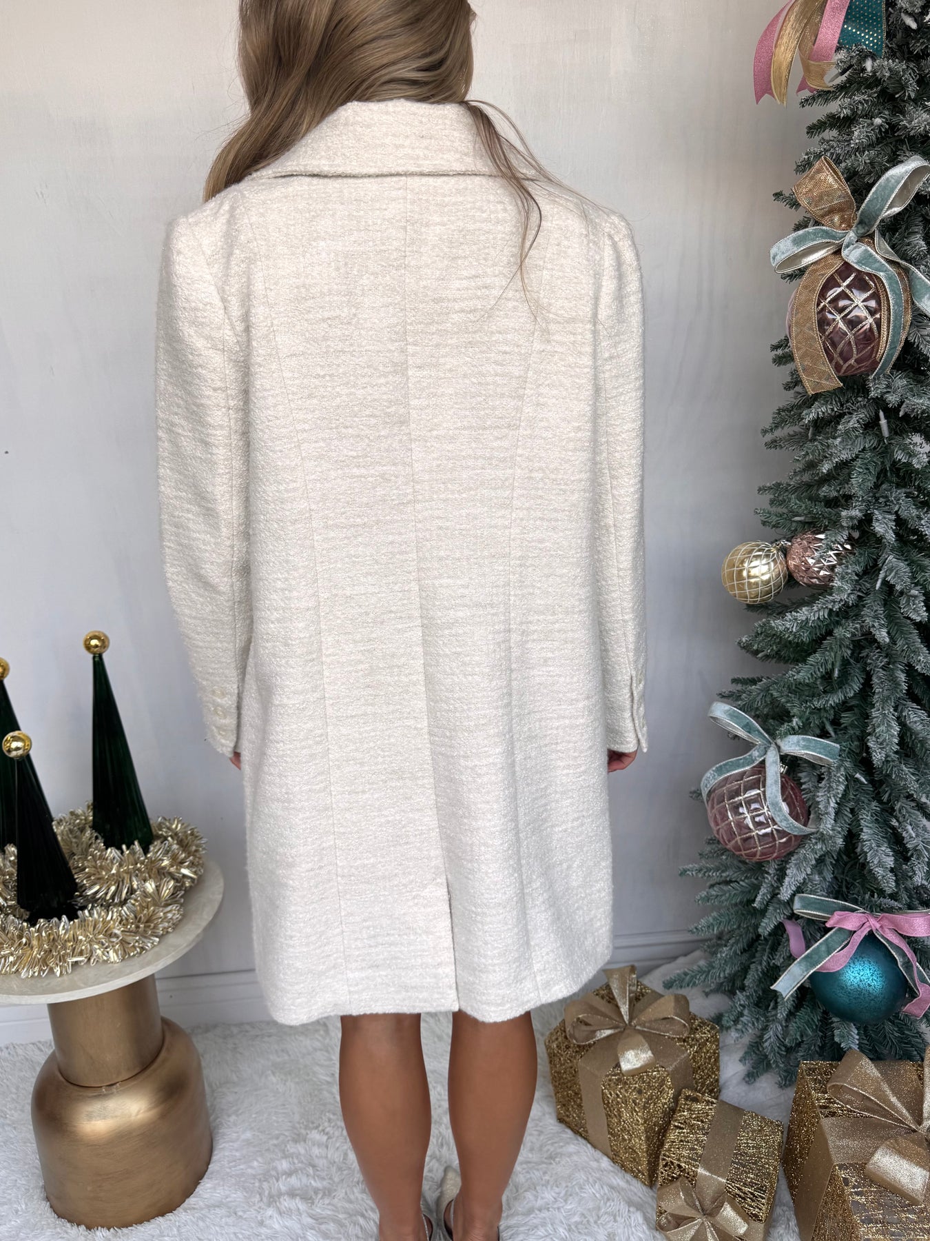 Elevate your outfit with the Dear John Marigold Cream Coat, the ideal jacket for church or any occasion when you want to dress up. Its structured design and hip-length cut create a polished silhouette that pairs beautifully with both dresses and pants, adding a refined touch to your look. This versatile coat brings effortless elegance to your wardrobe, making it a must-have for those special days.