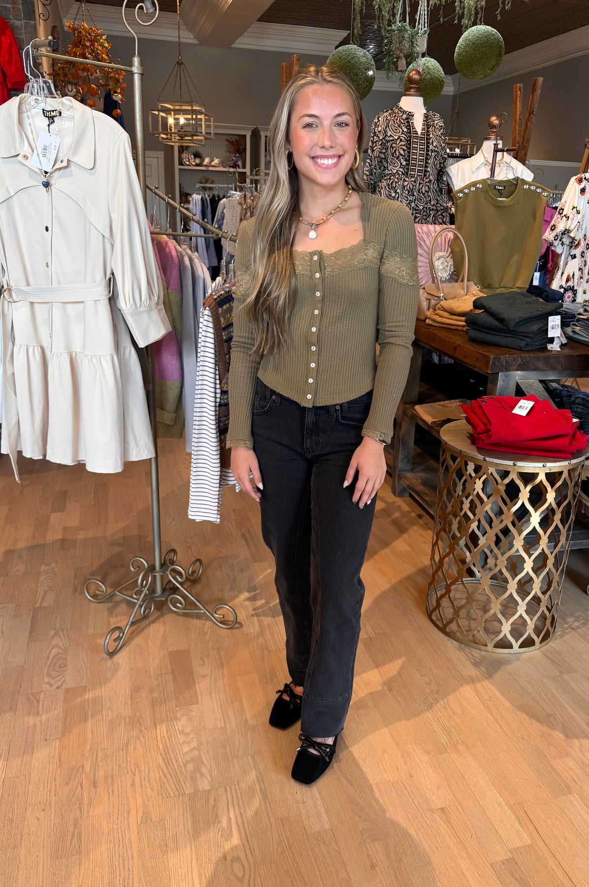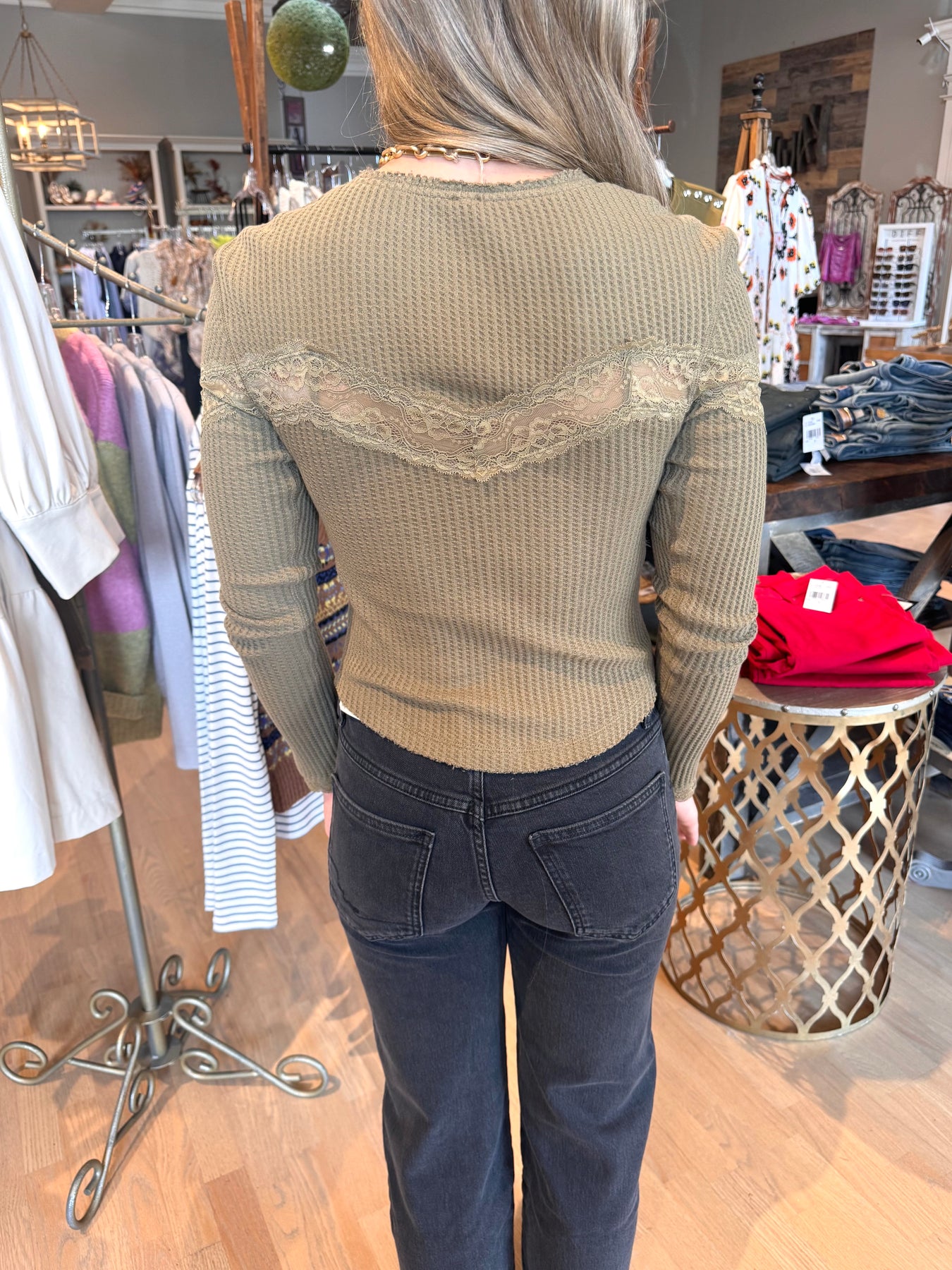 Lace trims give this waffle-knit cardigan the perfect femme touch.