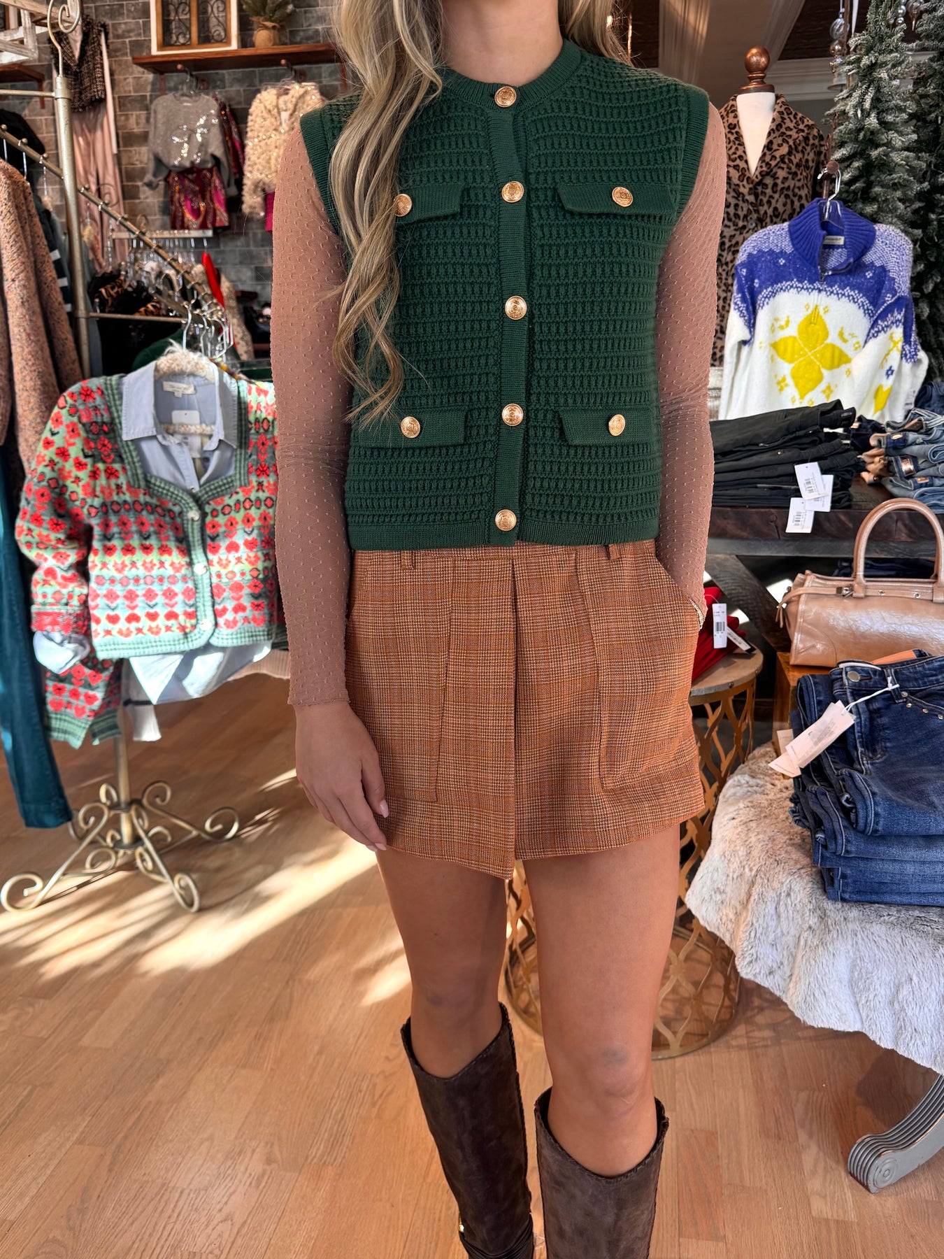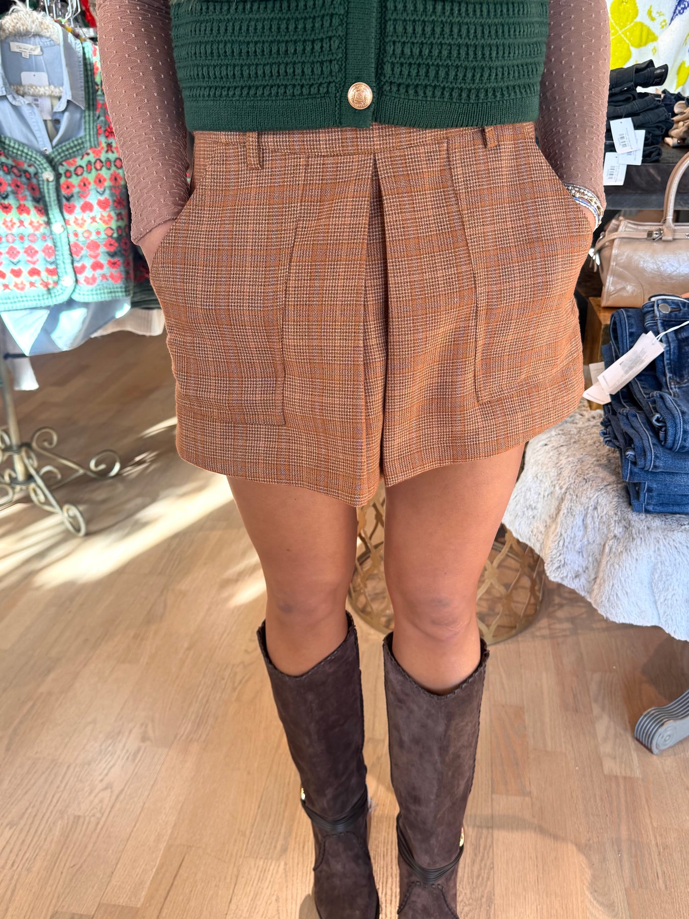 The Leighton Skort combines playful plaid design with practical front pockets for effortless style and convenience. Perfect for any casual outing, this skort offers the flattering look of a skirt with the comfort and freedom of shorts. Add a touch of charm and ease to your wardrobe with this versatile piece.