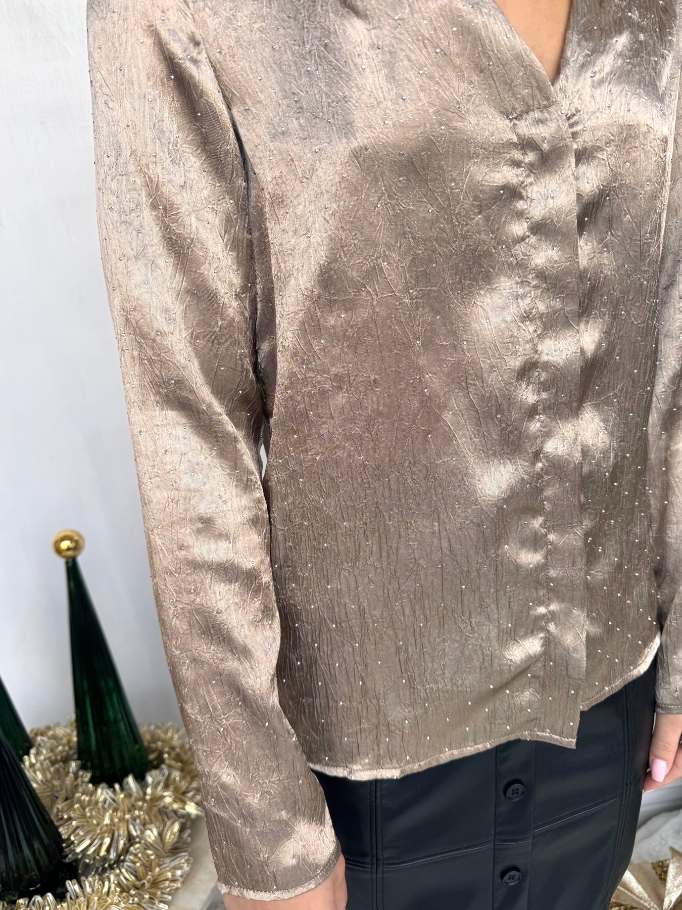 Elevate your holiday wardrobe with the Thea Embellished Mink Satin Long Sleeve Blouse. Luxurious satin fabric paired with thoughtful embellishments creates an effortlessly sophisticated look that transitions seamlessly from festive gatherings to everyday elegance. Style it with leather pants for edge, classic denim for casual polish, or a flowing skirt for timeless grace. This versatile piece proves that subtle details make all the difference—one blouse, endless possibilities.