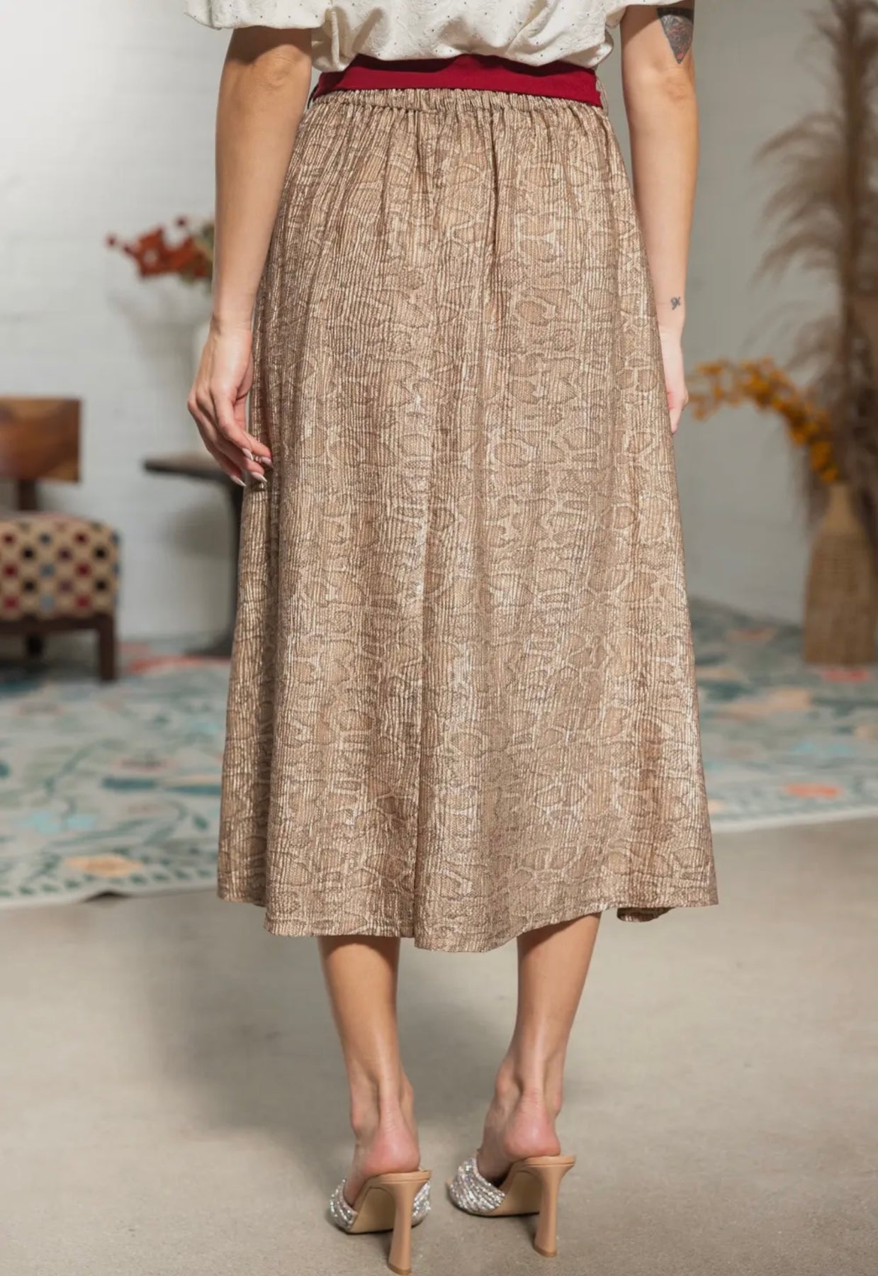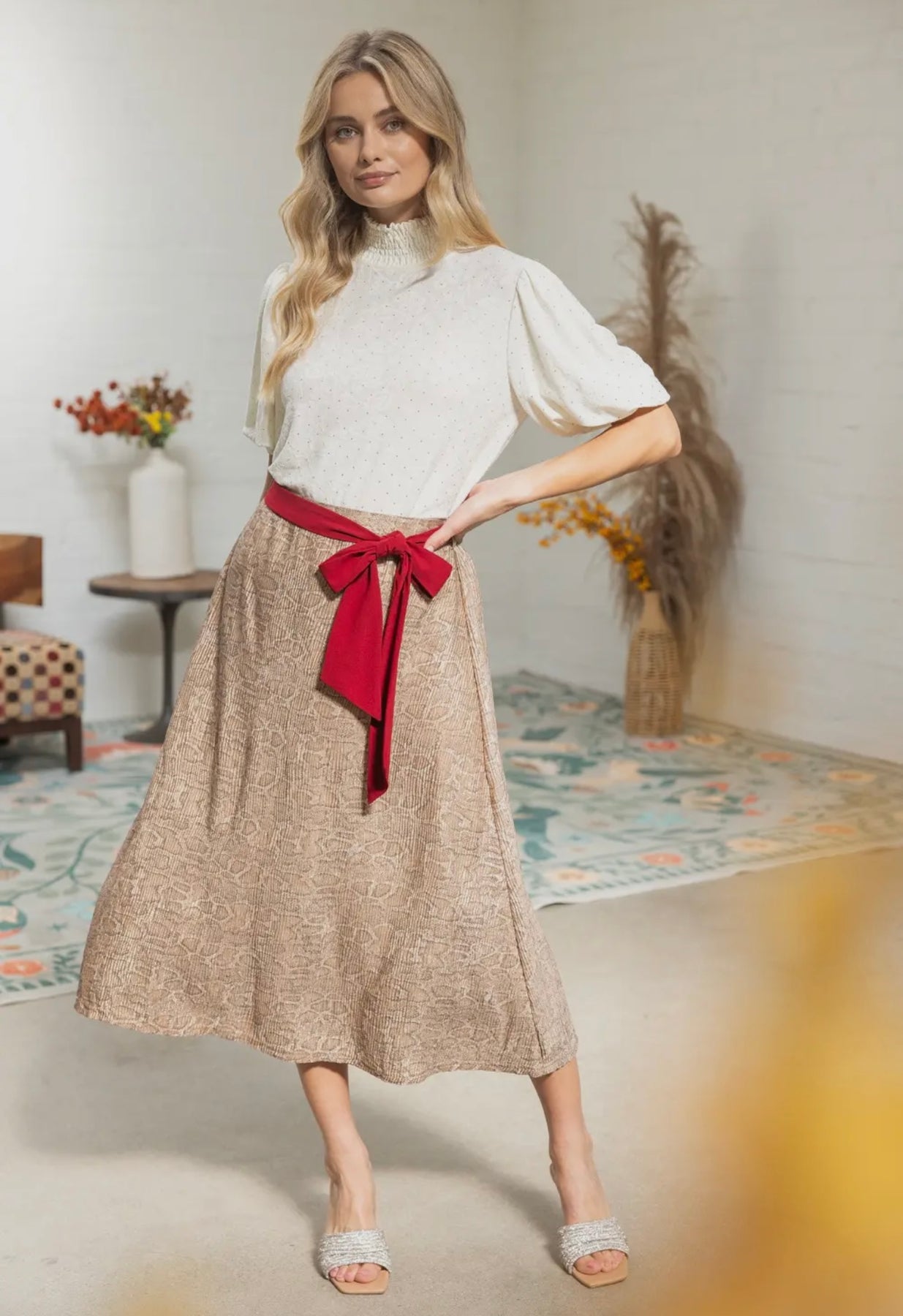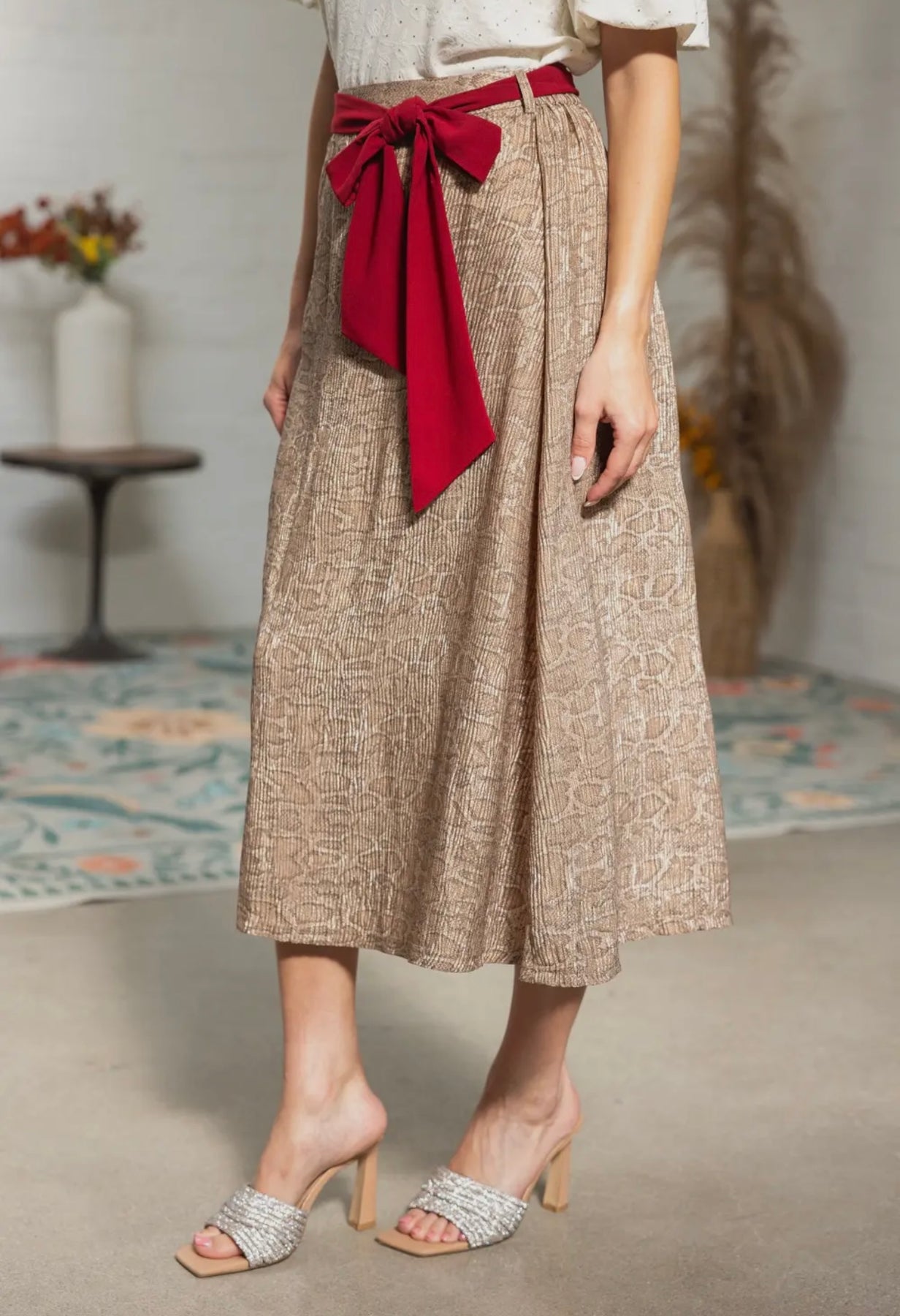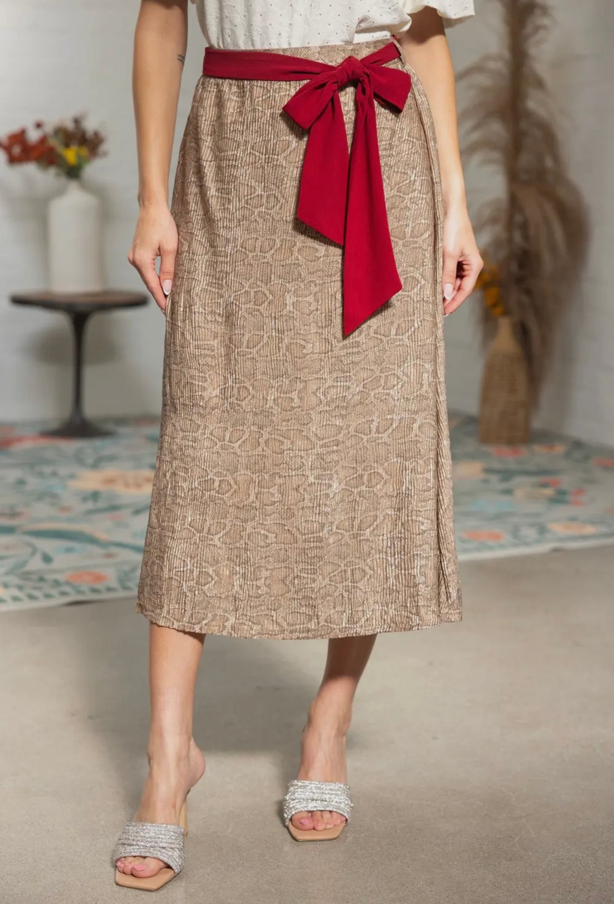 Elevate your style with this eye-catching animal print midi skirt featuring a bold red contrast tie belt. Its flattering silhouette enhances your figure while the striking print adds a fierce, fashionable edge. Perfect for day-to-night wear, this skirt combines comfort with a statement look that turns heads wherever you go. Add a touch of wild sophistication to your wardrobe today.