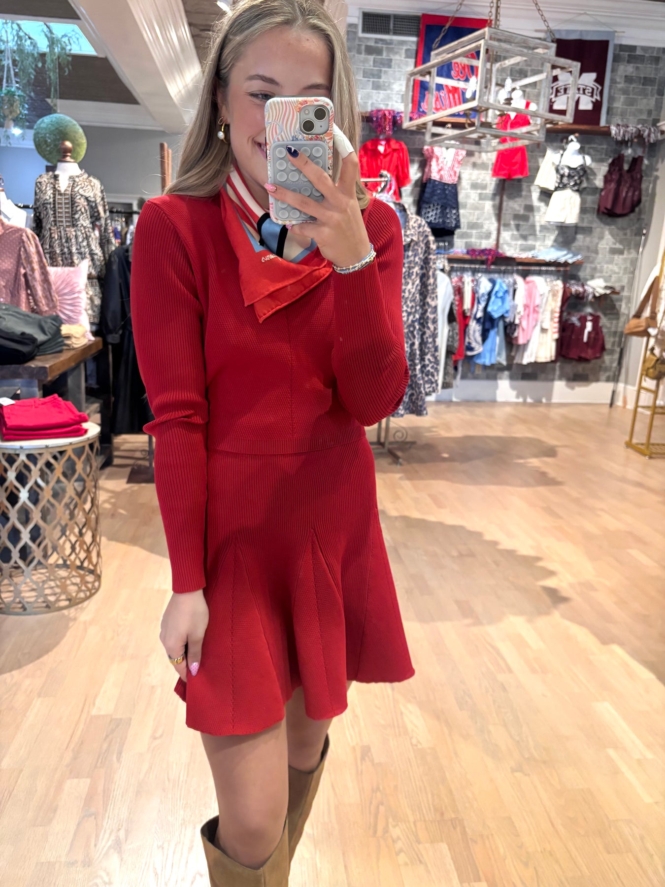 LONG SLEEVE KNIT TOP AND MINI SKIRT SET