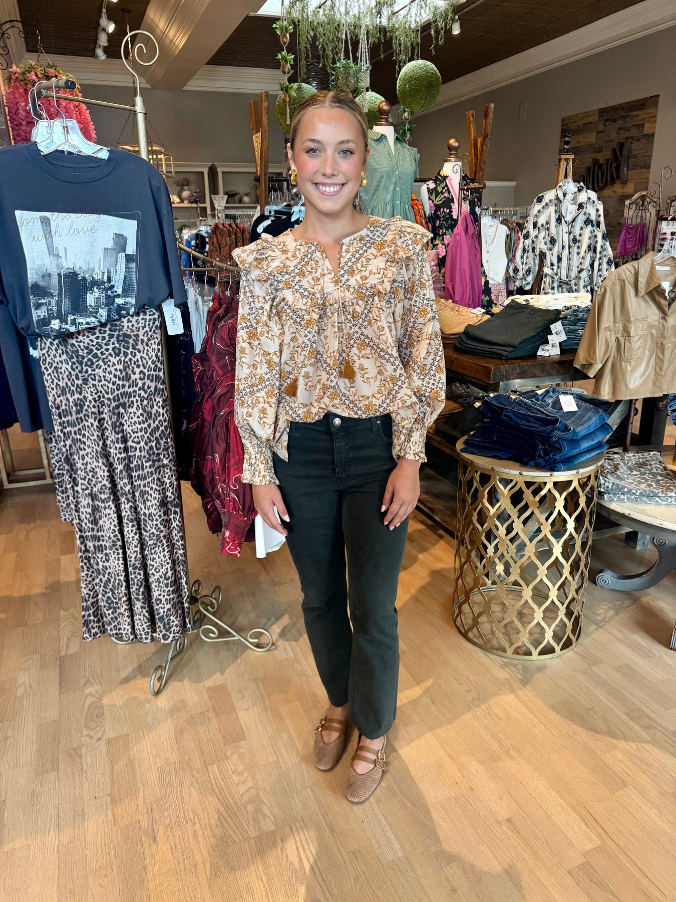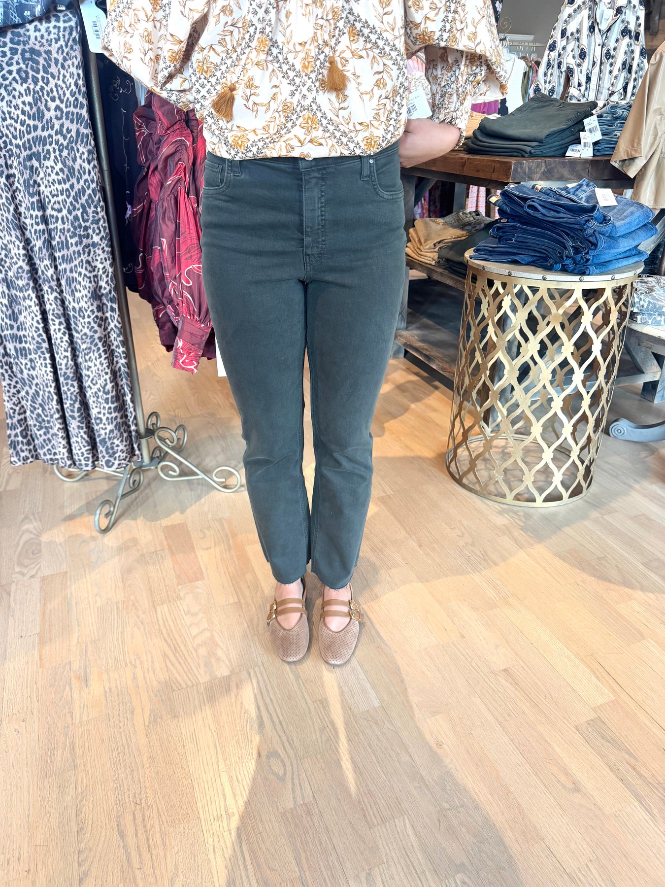 Embrace the season with these high-rise ankle flare corduroy pants, featuring Fab Ab for a flattering, smoothing fit. Made with a touch of stretch, they offer comfort and style in one perfect package. A must-have for your fall seasonal look that effortlessly combines cozy warmth with modern edge.