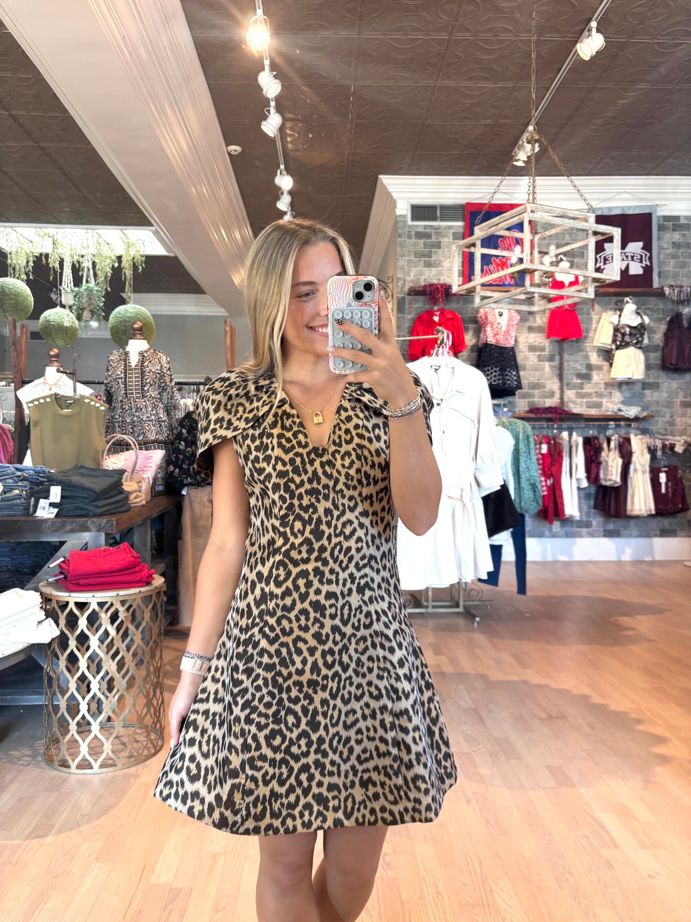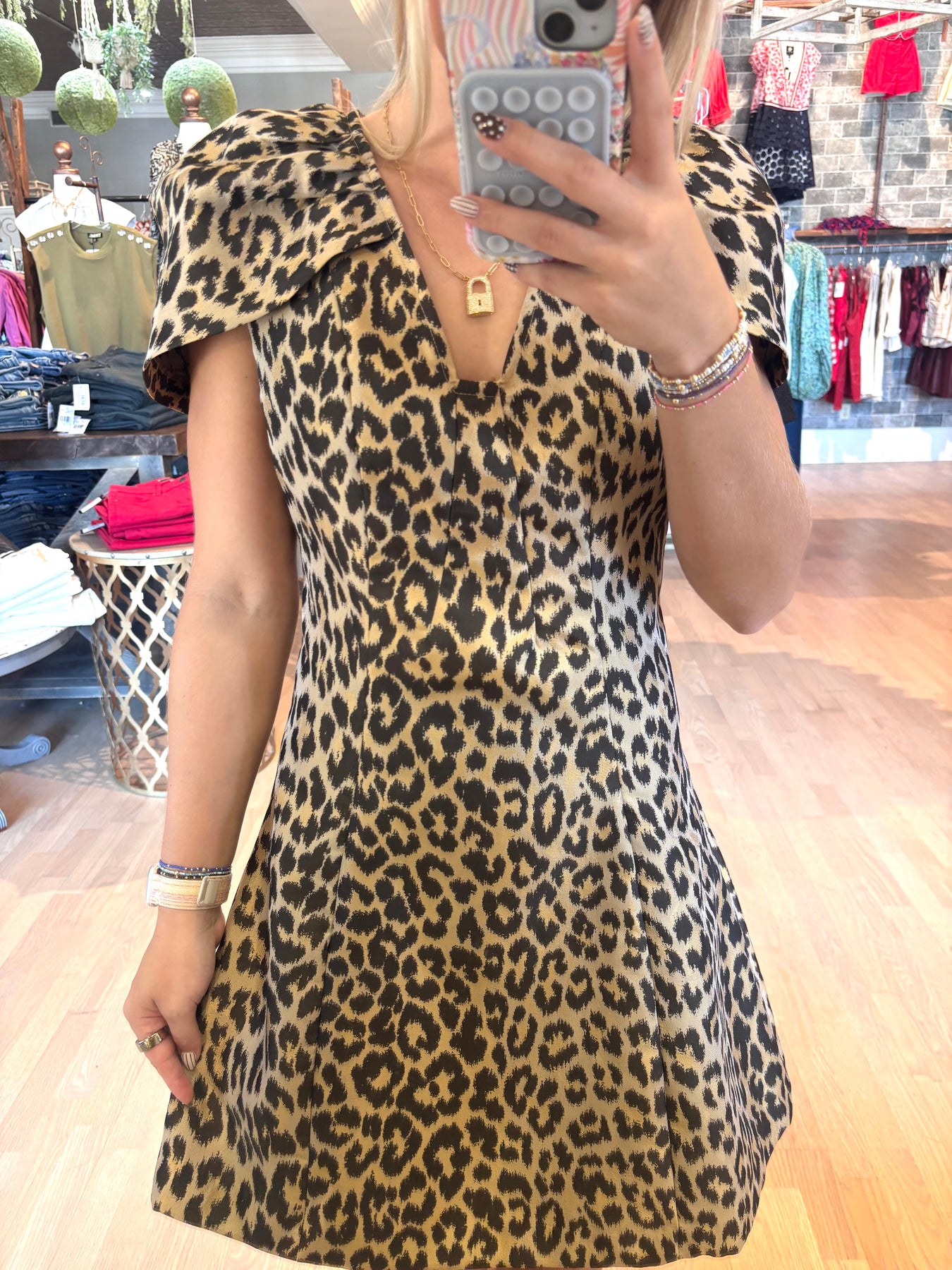 ZARIAH LEOPARD GATHERED SLEEVE MINI DRESS
