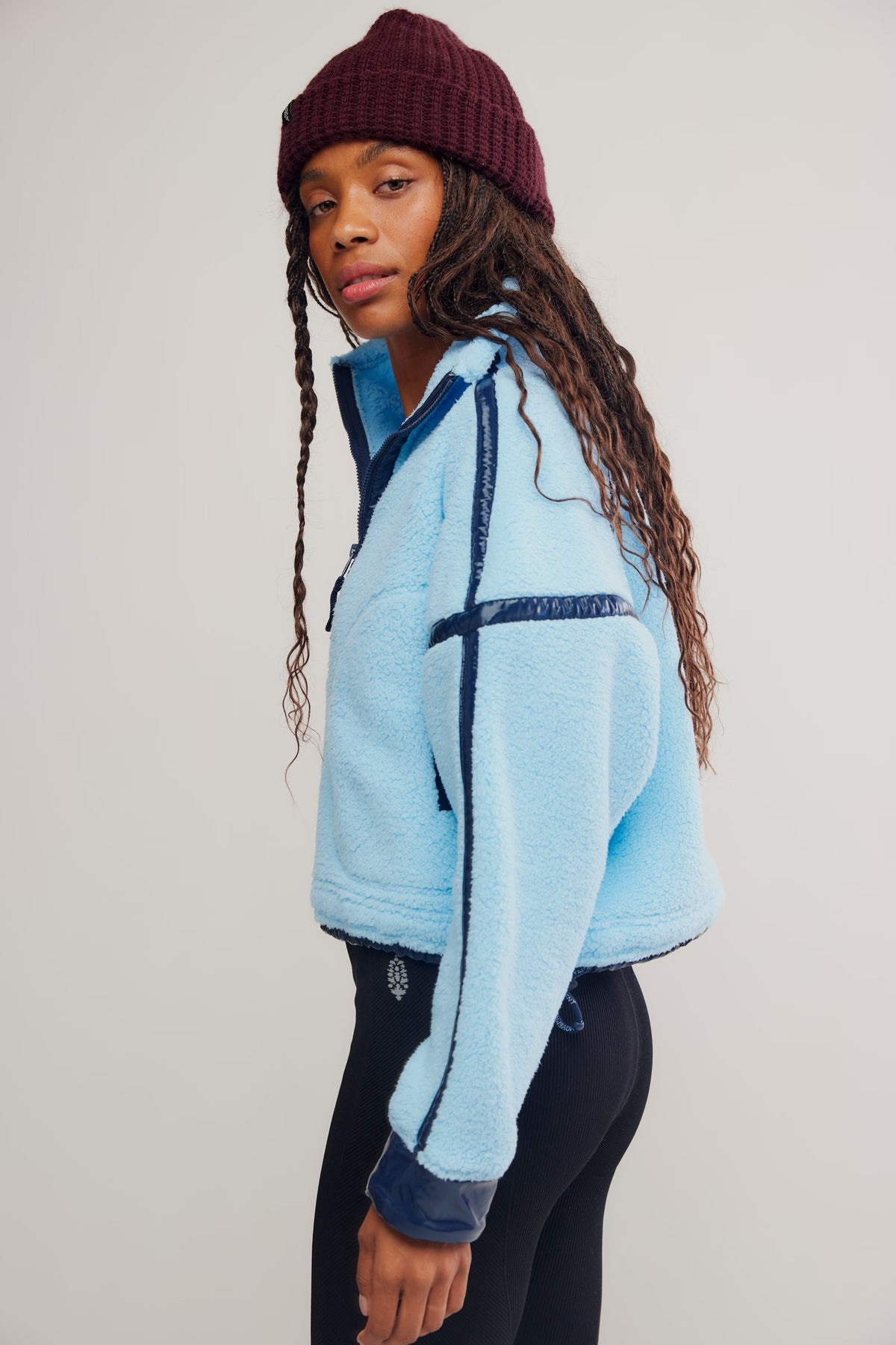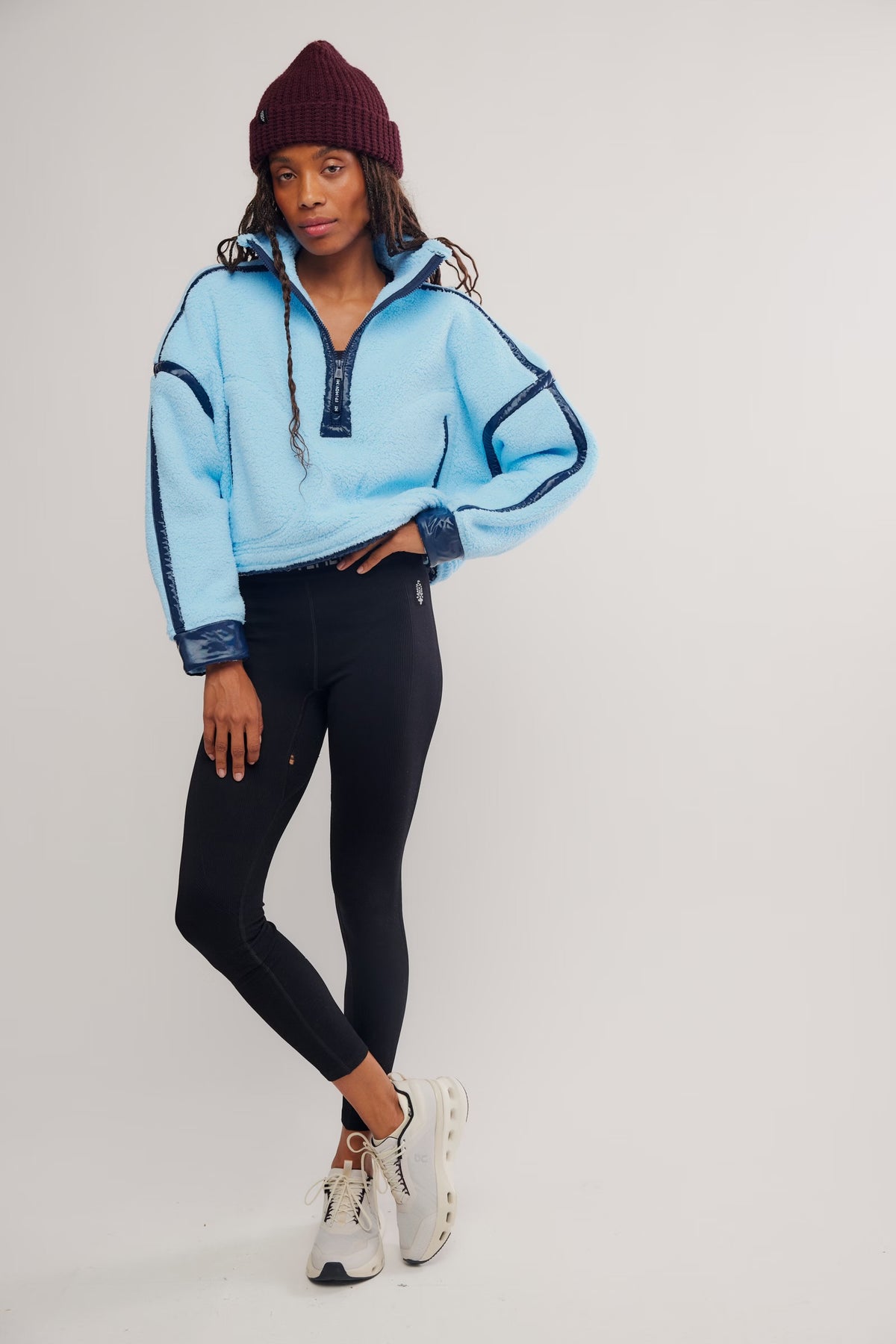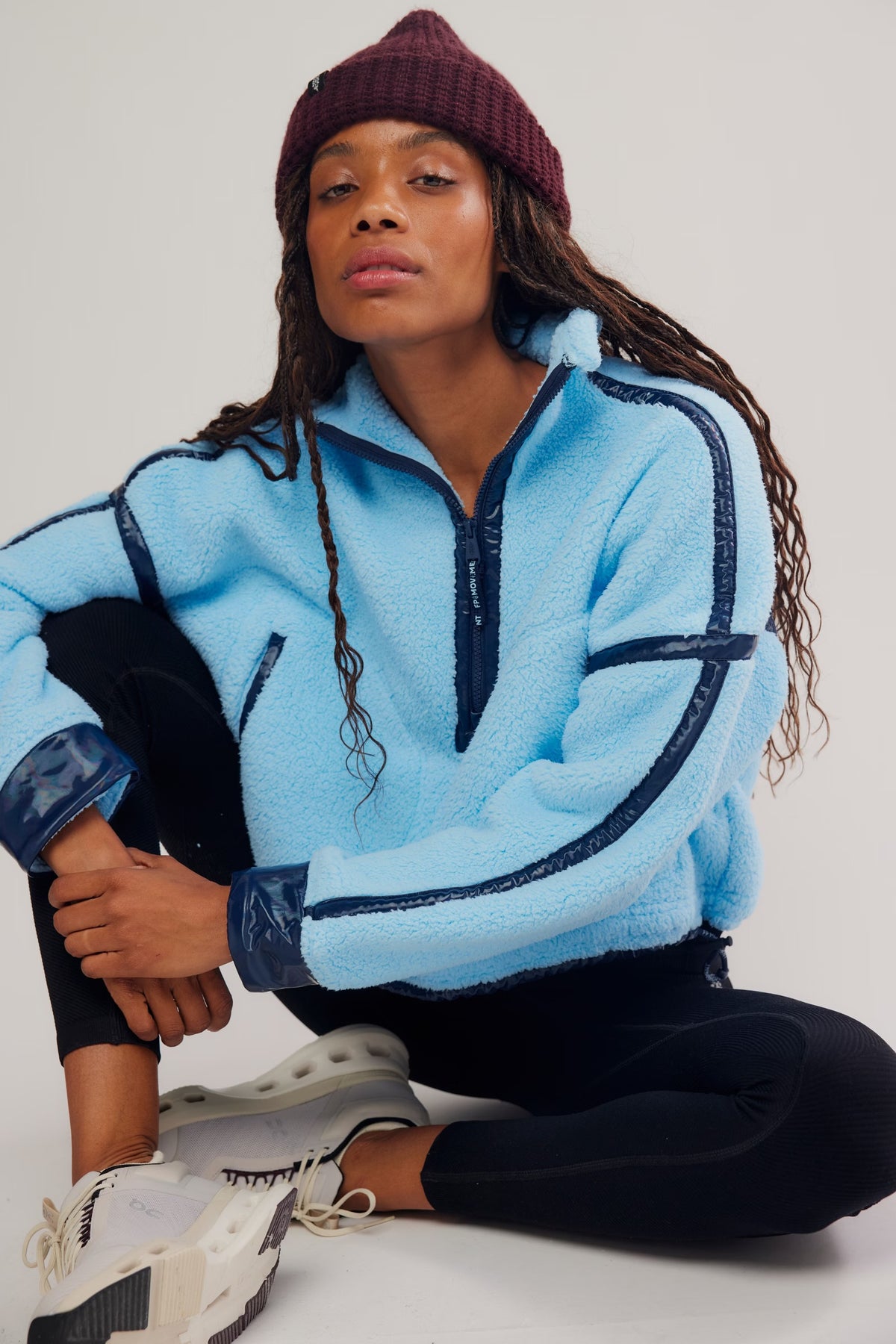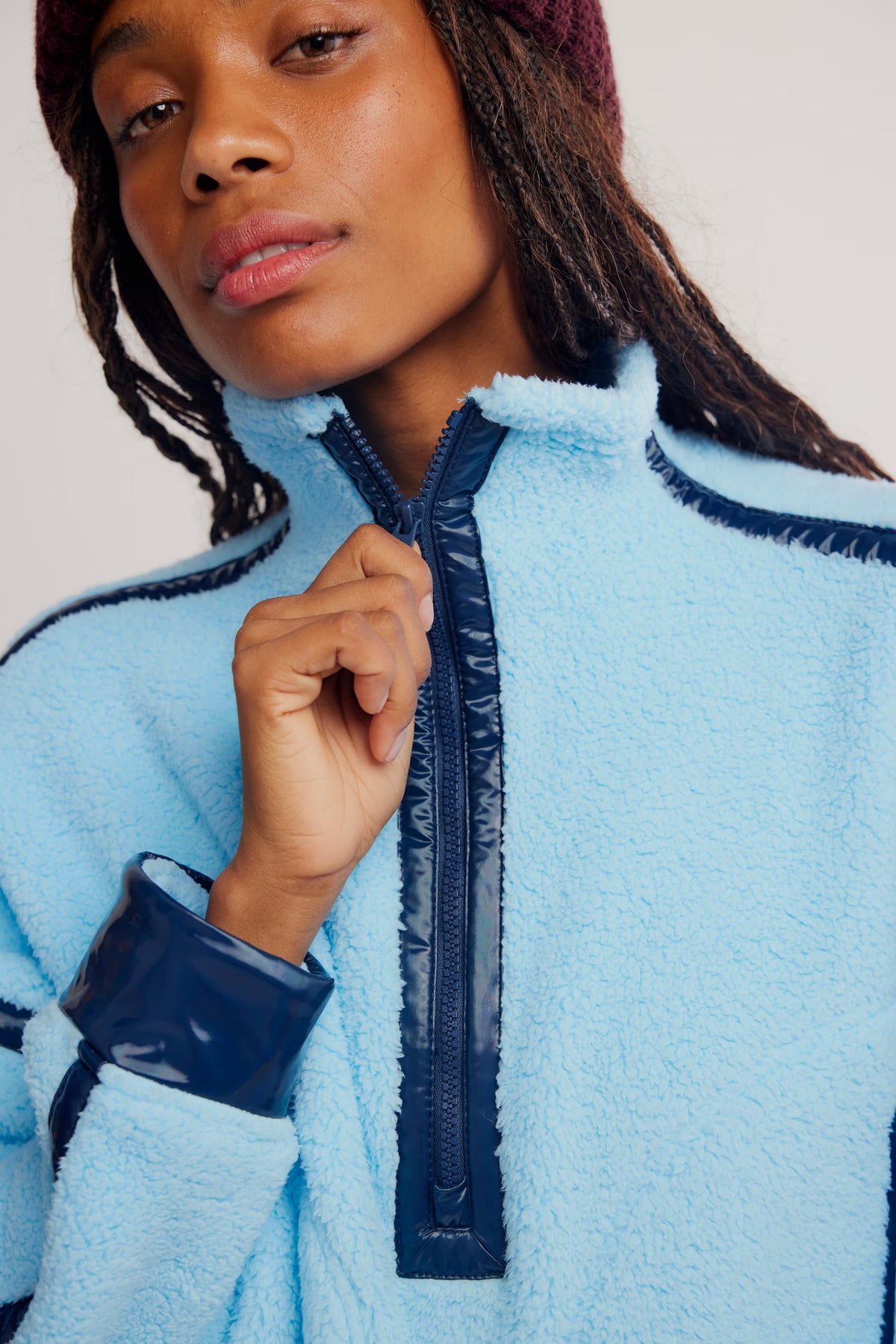 Take your layer game to the next level with this effortlessly essential half-zip featured in a slouchy, relaxed fit and stunning sherpa fabrication with contrast piping at hems for the ideal sporty finish.