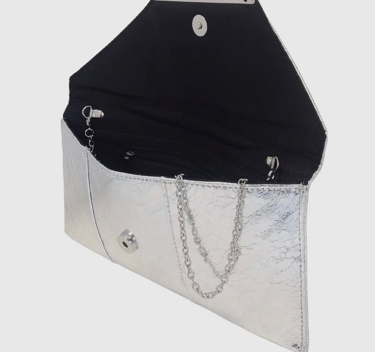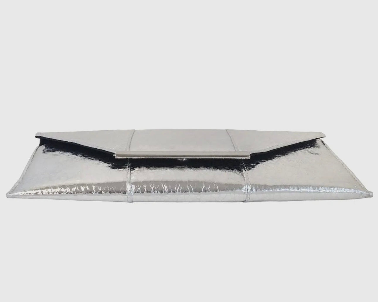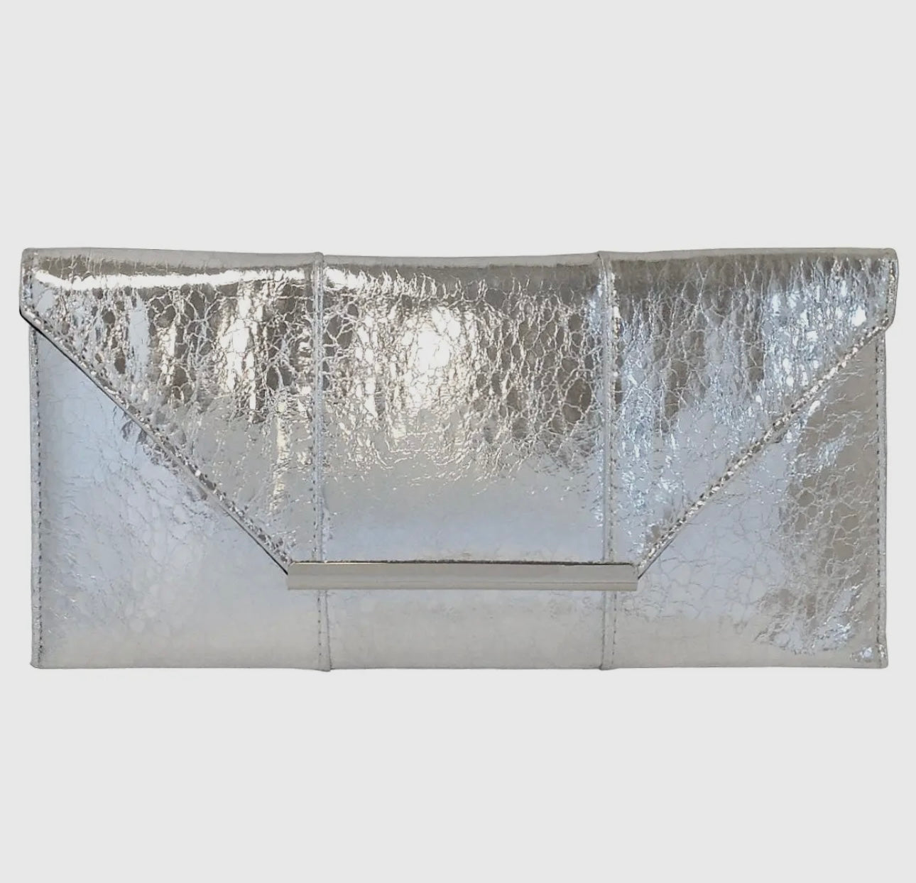 CRUSHED METALLIC EVENING CLUTCH - SILVER – Runway Boutique MS