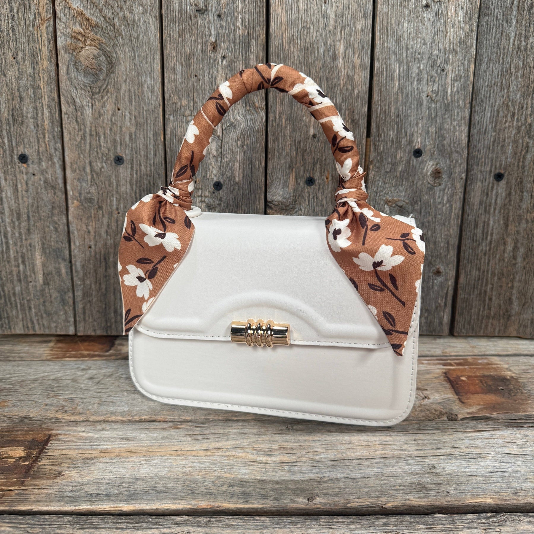 Western-Inspired Skinny Mini Scarf brings a modern twist to the traditional wild rag. Why you'll love it: * Brown and cream flowers * Lightweight, 100% polyester * Can be used for as a purse wrap, headband, neckerchief and more! * Express your western style, dress up any outfit * Measuring 34" x 2.5" Purse and other accessories not included.