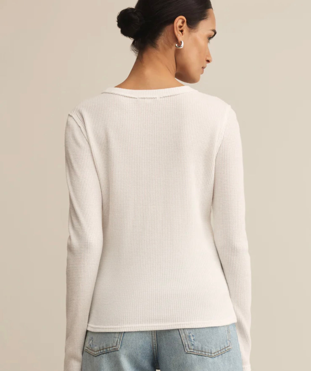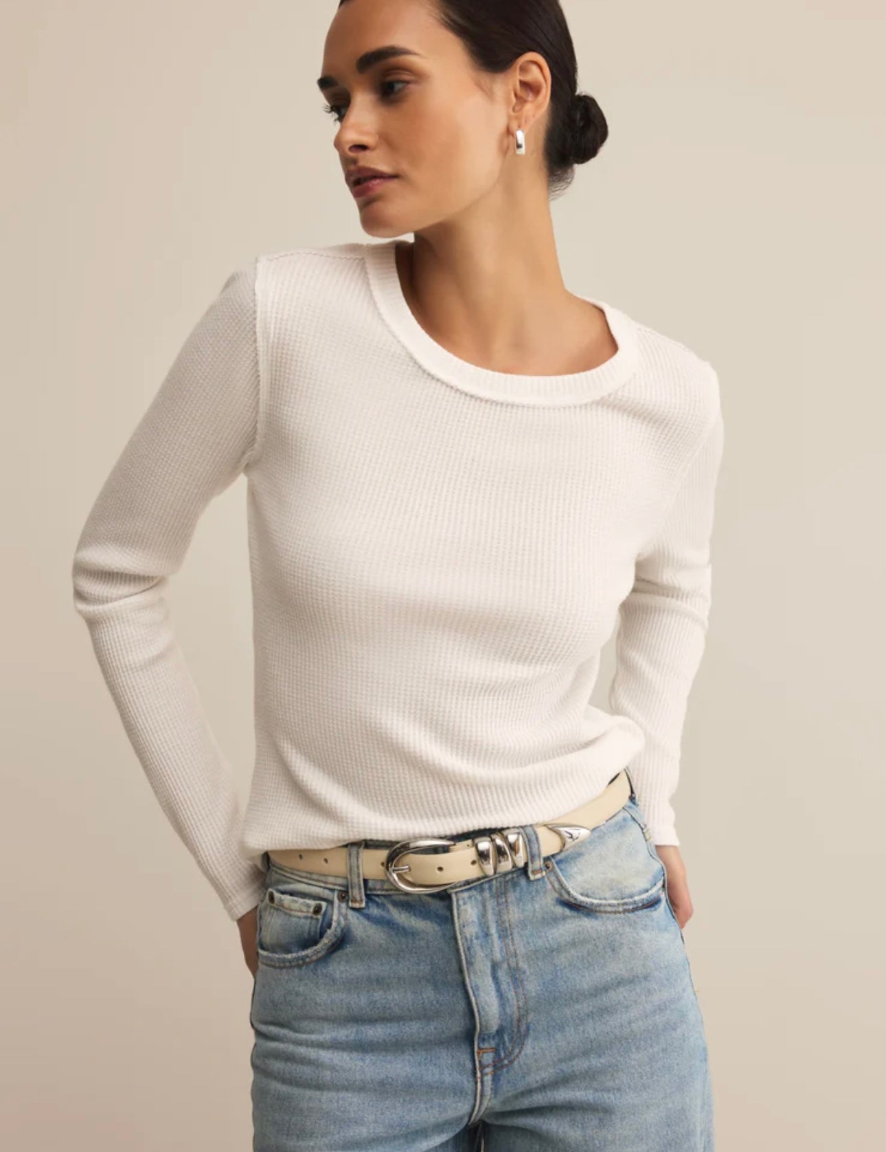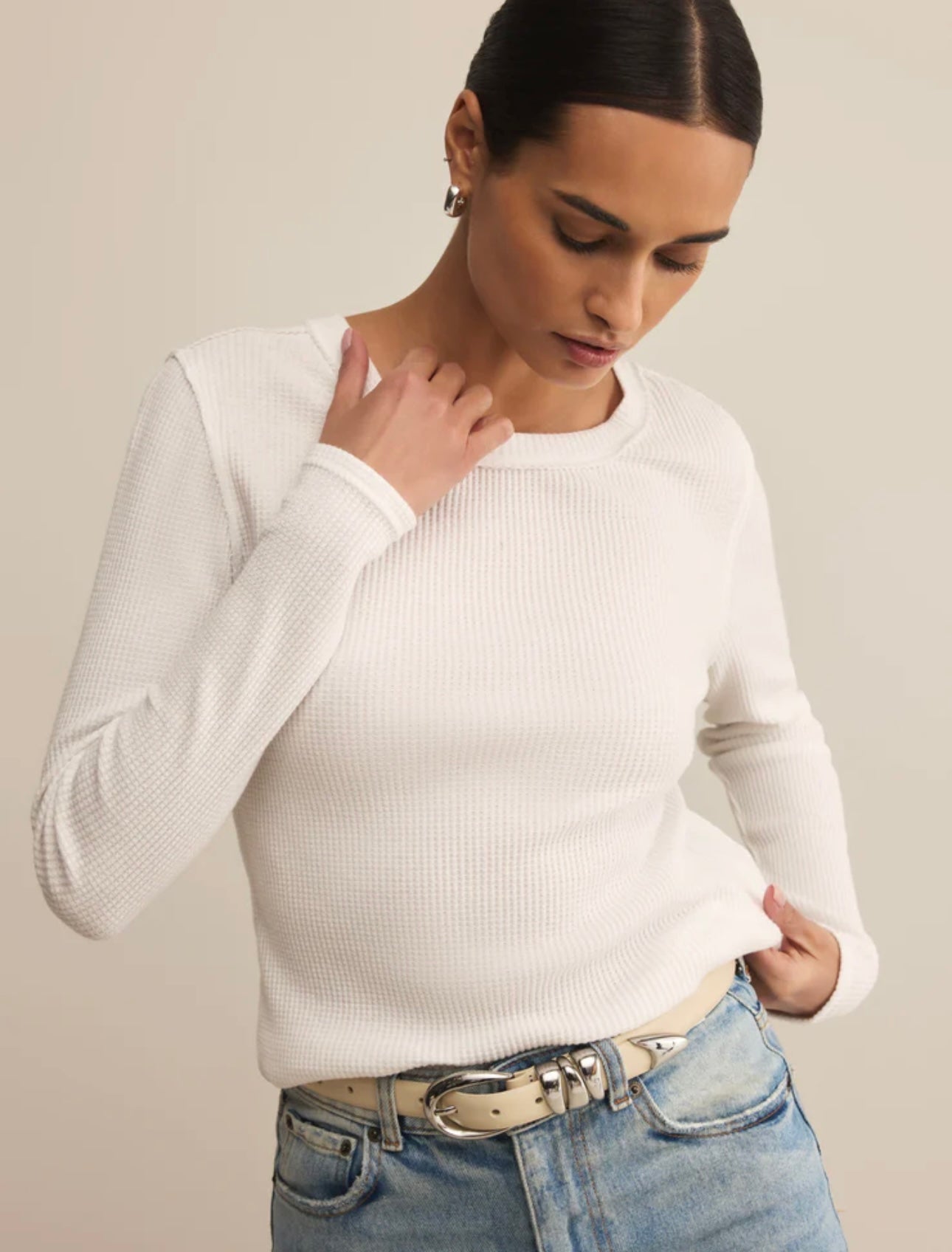 Stay comfortably warm in the ARLET MINI THERMAL TOP, designed with soft, long sleeves to provide cozy insulation without bulk. Its sleek white finish pairs effortlessly with any outfit, making it a versatile layering essential for cooler days. Enjoy all-day comfort and style while keeping the chill at bay in this must-have thermal top.