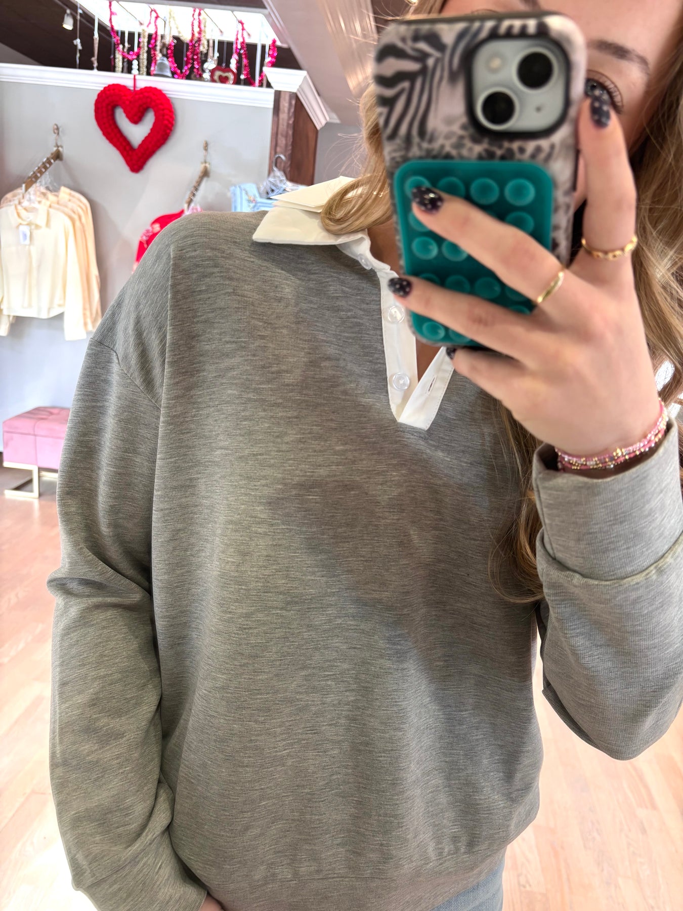 Effortless style meets comfort in this casual long sleeve polo sweatshirt mix. Throw it on with your favorite jeans for an instantly polished look that doesn't sacrifice ease. The structured fabric keeps you feeling put-together throughout the day, while the relaxed fit ensures all-day wearability. Perfect for those moments when you want to look intentional without the effort.