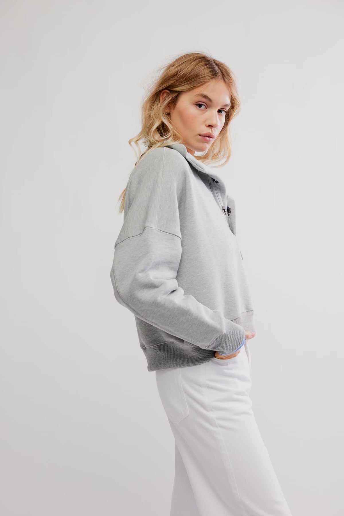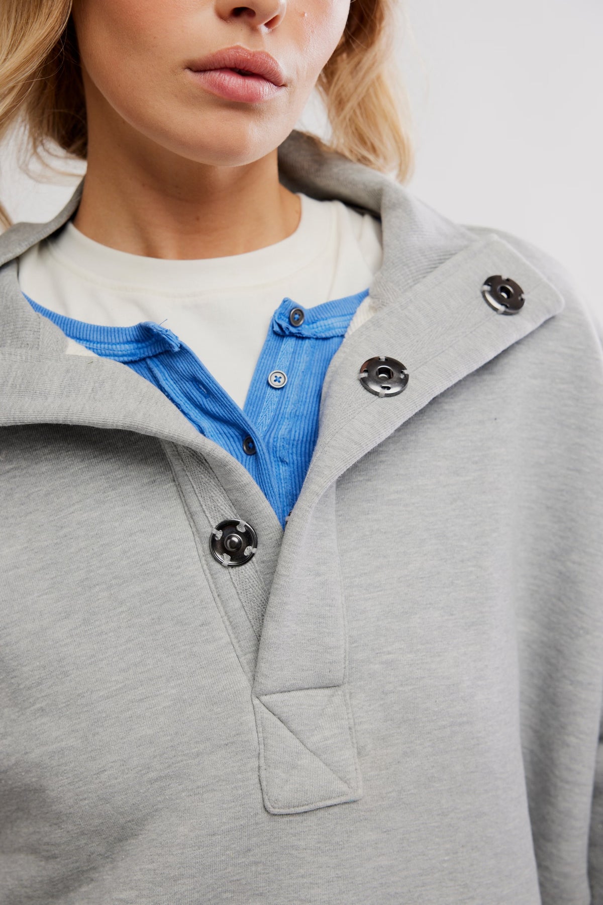 So cozy and essential, this wear-everywhere pullover features a funnel neck design with quarter-button detail and ribbed trimming for added dimension.