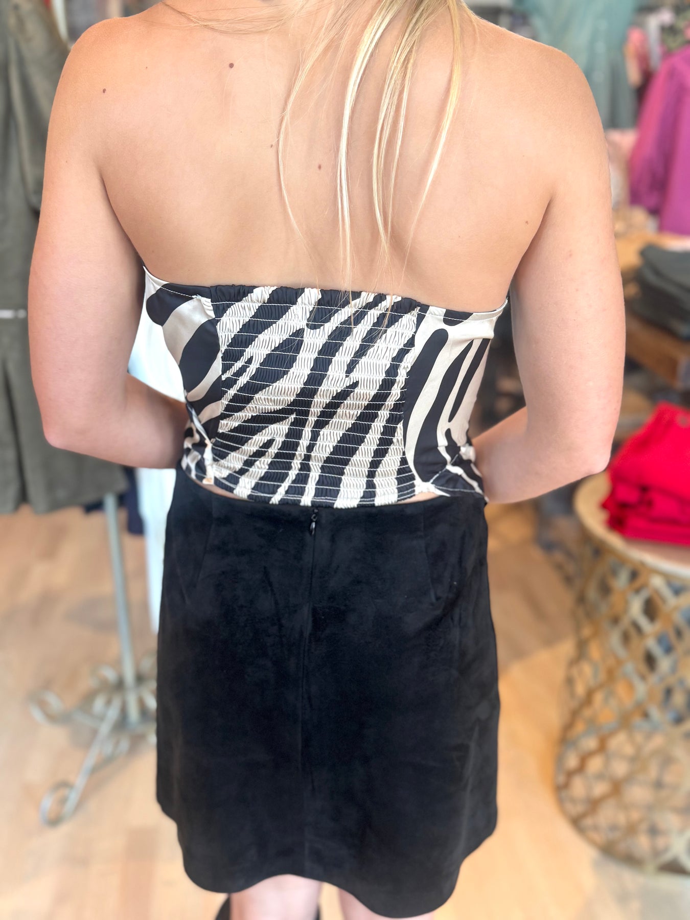 This halter animal print top is a versatile addition to your wardrobe, perfect for wearing on its own or layered under a jacket. Its neutral tones and playful pattern make it a stylish and fun choice for any outing, effortlessly combining comfort and flair. Elevate your look with this must-have piece that transitions seamlessly from day to night.