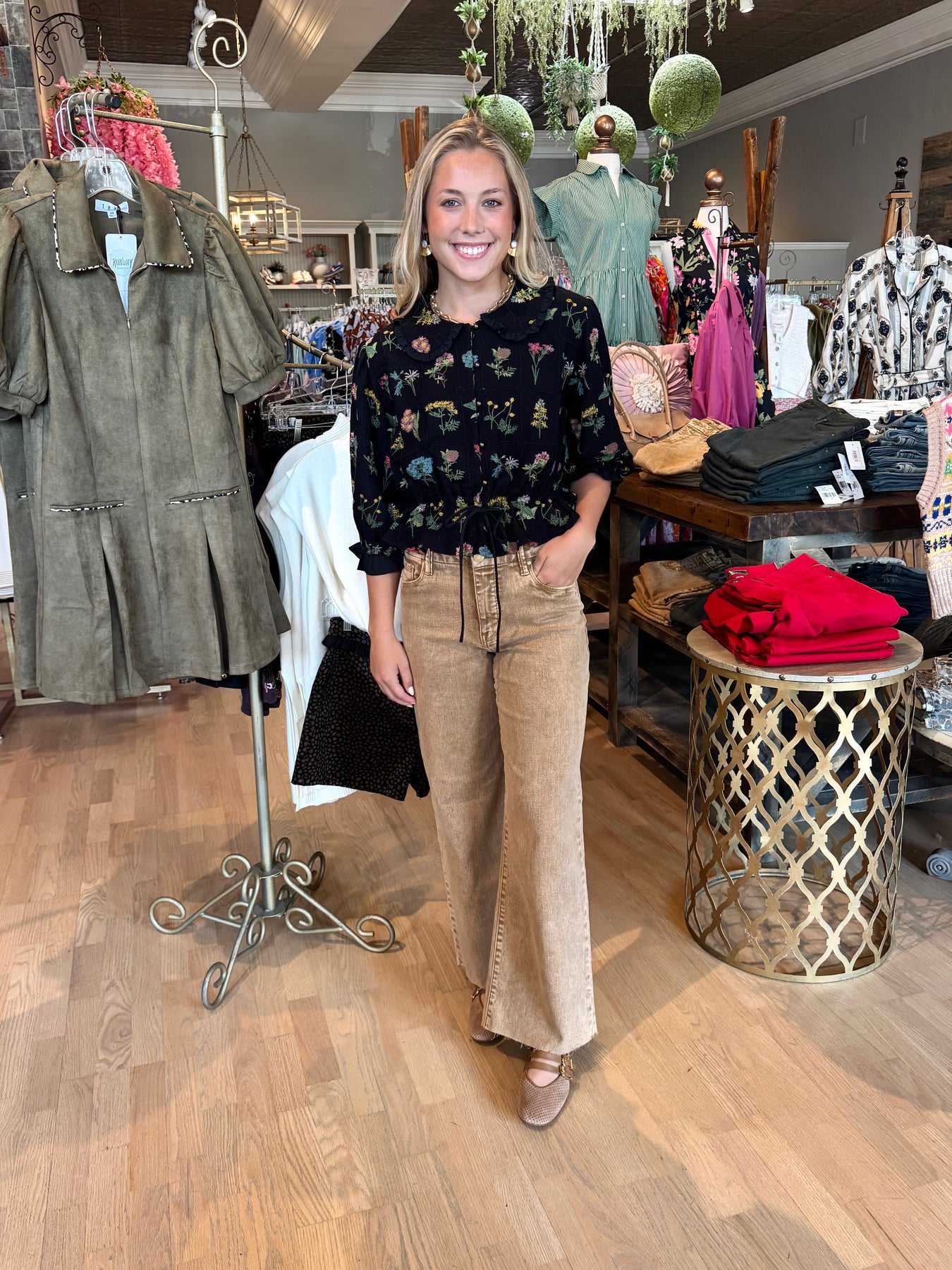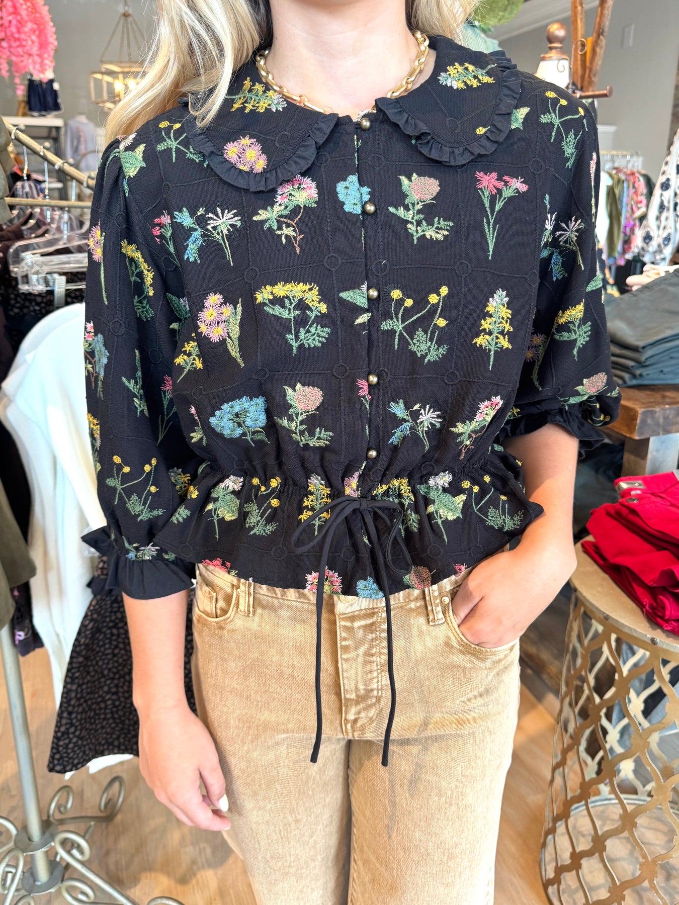 Elevate your wardrobe with the Lia Top, featuring a flattering cropped fit and convenient button-down front. The elastic waist with a stylish tie enhances your silhouette for a perfect, adjustable fit. Three-quarter sleeves add a versatile touch, making it ideal for day-to-night wear. Comfortable and chic, the Lia Top effortlessly combines style and ease for any occasion.