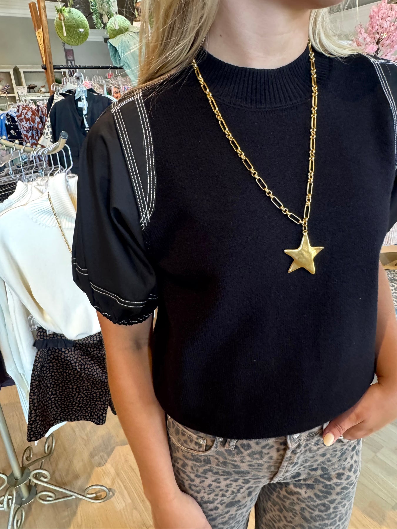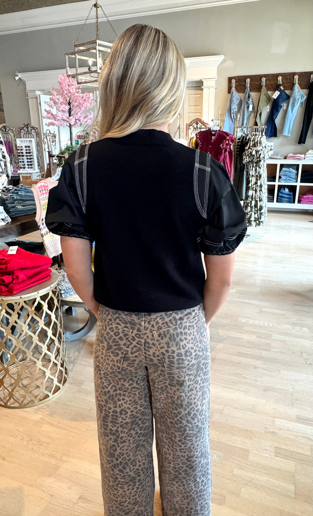 Elevate your wardrobe with the Poplin Puff Sleeve Knit Top, designed to blend classic style with modern comfort. This top features delicate puff sleeves that add a feminine touch, while the soft knit fabric ensures a flattering fit and breathable feel. Perfect for both casual outings and polished looks, it pairs effortlessly with your favorite jeans or skirts for versatile wear. Discover the ideal balance of elegance and ease in one chic top.