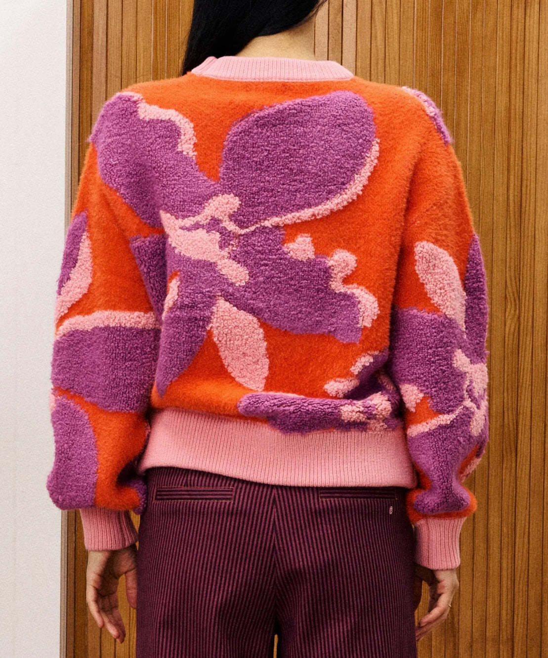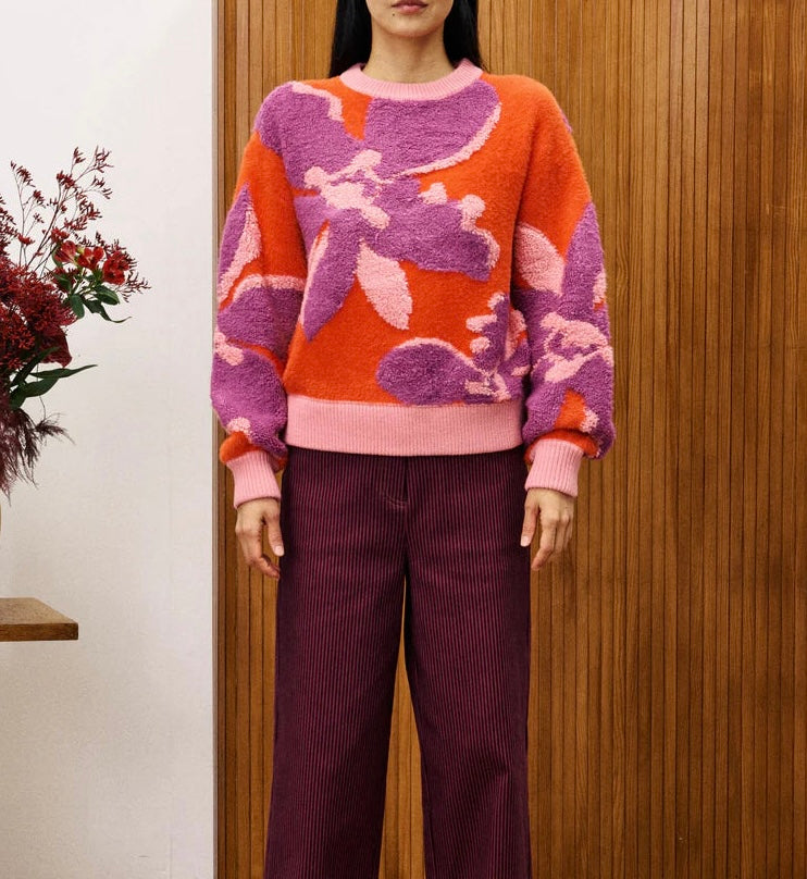 The AYME Sweater brings a playful burst of color and texture to your wardrobe. Featuring a vibrant print combined with diverse textures, this sweater offers rich detail that stands out in any setting. Perfect for those who love unique, eye-catching style with a cozy feel, it adds energy and personality to your outfit effortlessly.