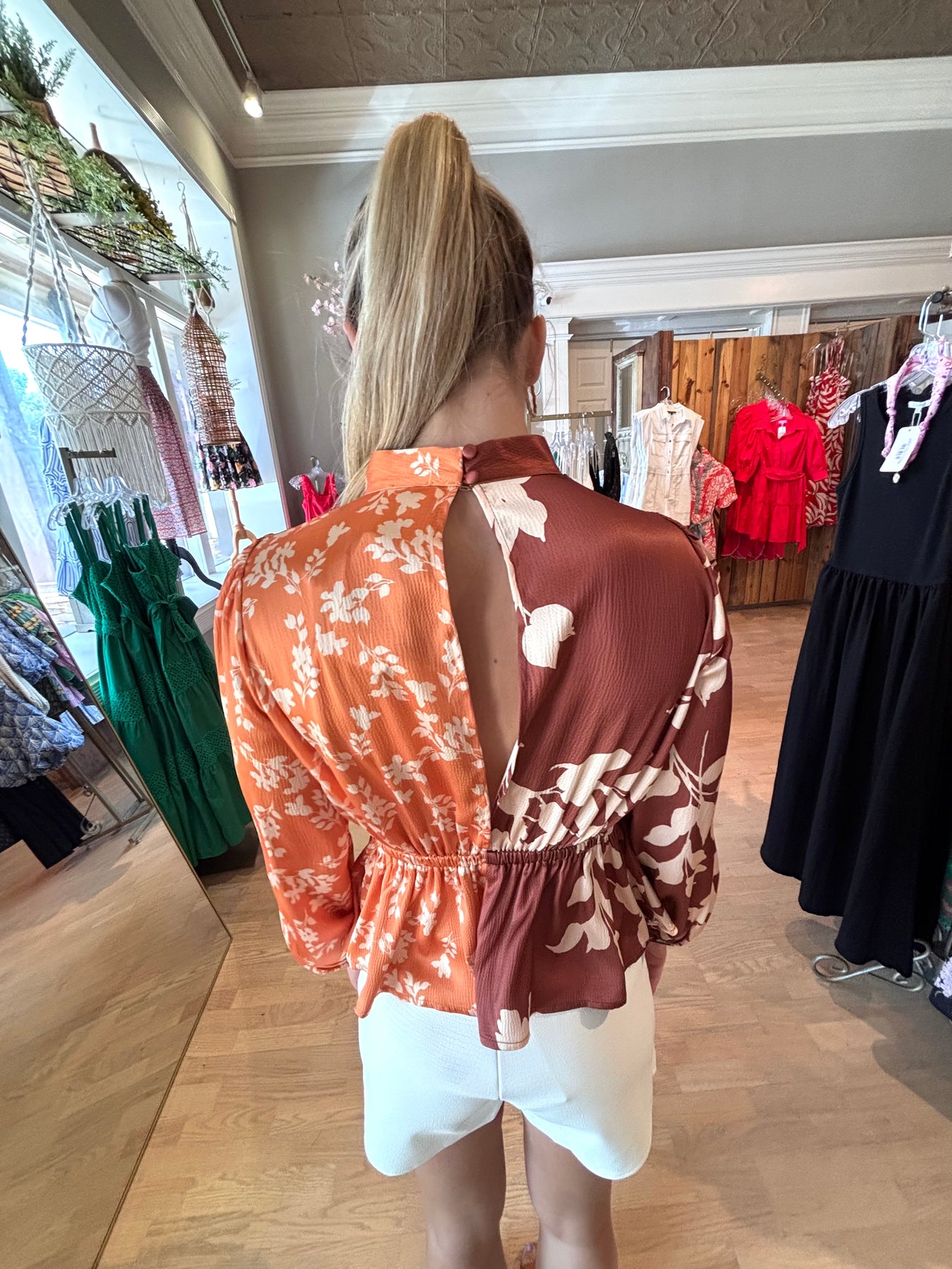 RUIZA TWO TONE MOCK NECK BLOUSE